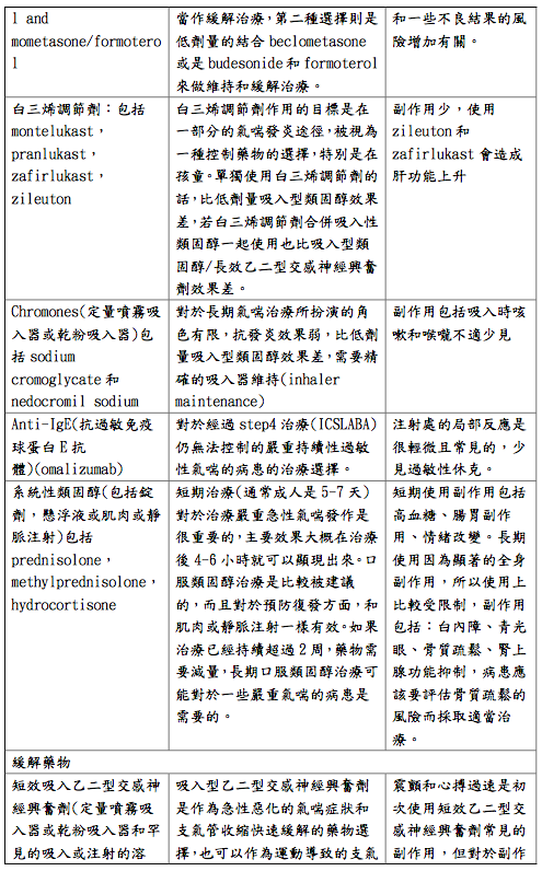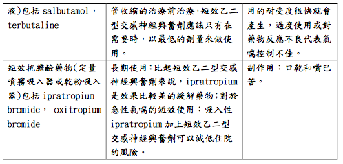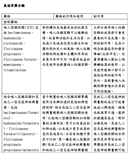 - 氣喘藥物。每位氣喘病人都應擁有緩解型藥物,而大部分的成人及青少年氣 喘病人應擁有控制型藥物