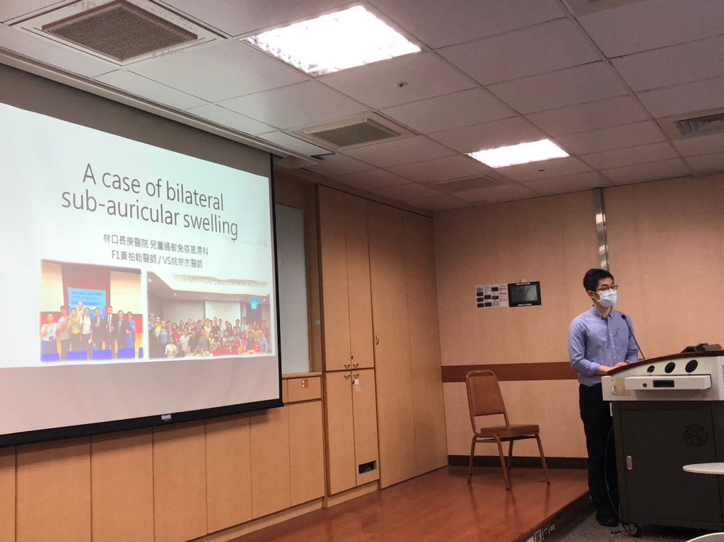 今天的會議裡有兩個病例討論議題:第一例由林口長庚醫院兒童過敏免疫風濕科黃柏翰與姚宗杰醫師所報告的18歲女生有反覆兩側腮腺腫大合併乾眼症,實驗室檢查呈現陽性抗核抗體、SSA抗體、SSB抗體,確診為Primary Sjogren syndrome;