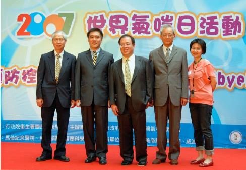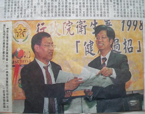 2. 代表十家醫學中心與當時的衛生署代表保健處陳再晉處長簽訂氣喘防治專案計劃合約。由各參與醫院提供氣喘病人與民眾完整的衛教諮詢與治療服務。